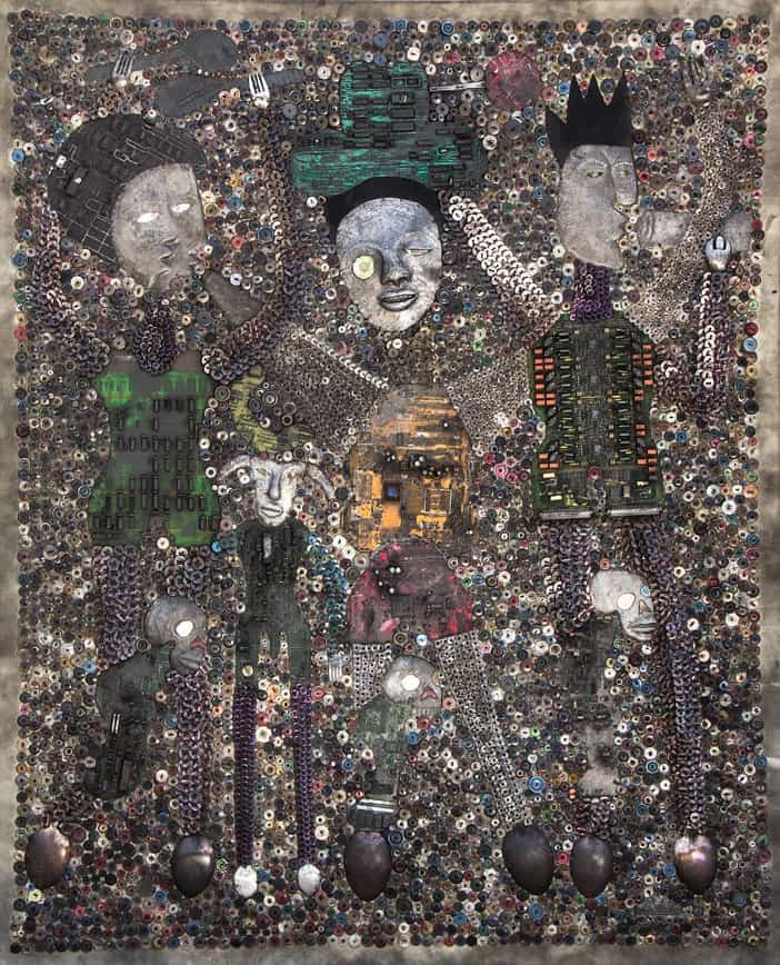 Previous ImageNext Image BD_Rara Lakay David Boyer Rara Lakay 2014 métal recyclé et boutons sur tissu 160 x 130 cm Port-au-Prince, collection particulière Remerciements à madame Pascale Théard et monsieur Jean-Marc Larco Photo Josué Azor