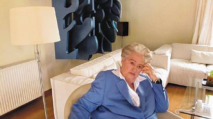 Στις 10 Ιουνίου του 2010, με αφορμή την έκθεσή της στο Κτίριο Τέχνης «Mihalarias Art» (ζωγραφική με αυστηρά ιδεογράμματα της κινεζικής γραφής και αινιγματικά τοπία με την πνοή και τη φόρμα του δικού της αφαιρετικού τρόπου), είχε δεχτεί να κάνουμε μια κουβέντα στο σπίτι της στην Κηφισιά. Μιλήσαμε στο φωτεινό καθιστικό της, παρέα με το ολόλευκο σκυλί της, που αποκαλούσε «πούπουλο». Ακολουθεί η κουβέντα εκείνης της ημέρας: