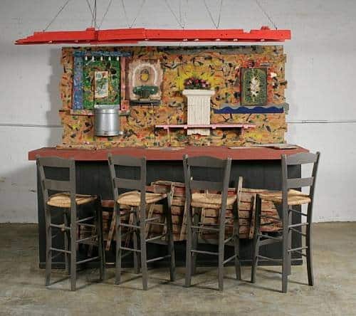 Από τη βραδιά της γιορτής των γενεθλίων του Γιάννη Κουνέλλη, της Rebecca Horn και του Heiner Müller – τα είχαν γιορτάσει και οι τρεις μαζί – δημιουργήθηκε κι ένας πίνακας που παρουσιάζεται, επίσης, στην έκθεση. Τον έφτιαξαν και οι τρεις καλλιτέχνες με τα υλικά που υπήρχαν πάνω στο τραπέζι: το λεκιασμένο από το κρασί τραπεζομάντιλο, ένα άδειο πακέτο τσιγάρων Gauloises, τα μαχαιροπίρουνα, τα ξεραμένα κόκκινα τριαντάφυλλα. Η σύνθεση με τα καθημερινά υλικά στερεώθηκε με προσοχή σε μια επιφάνεια και μπήκε σε κορνίζα.