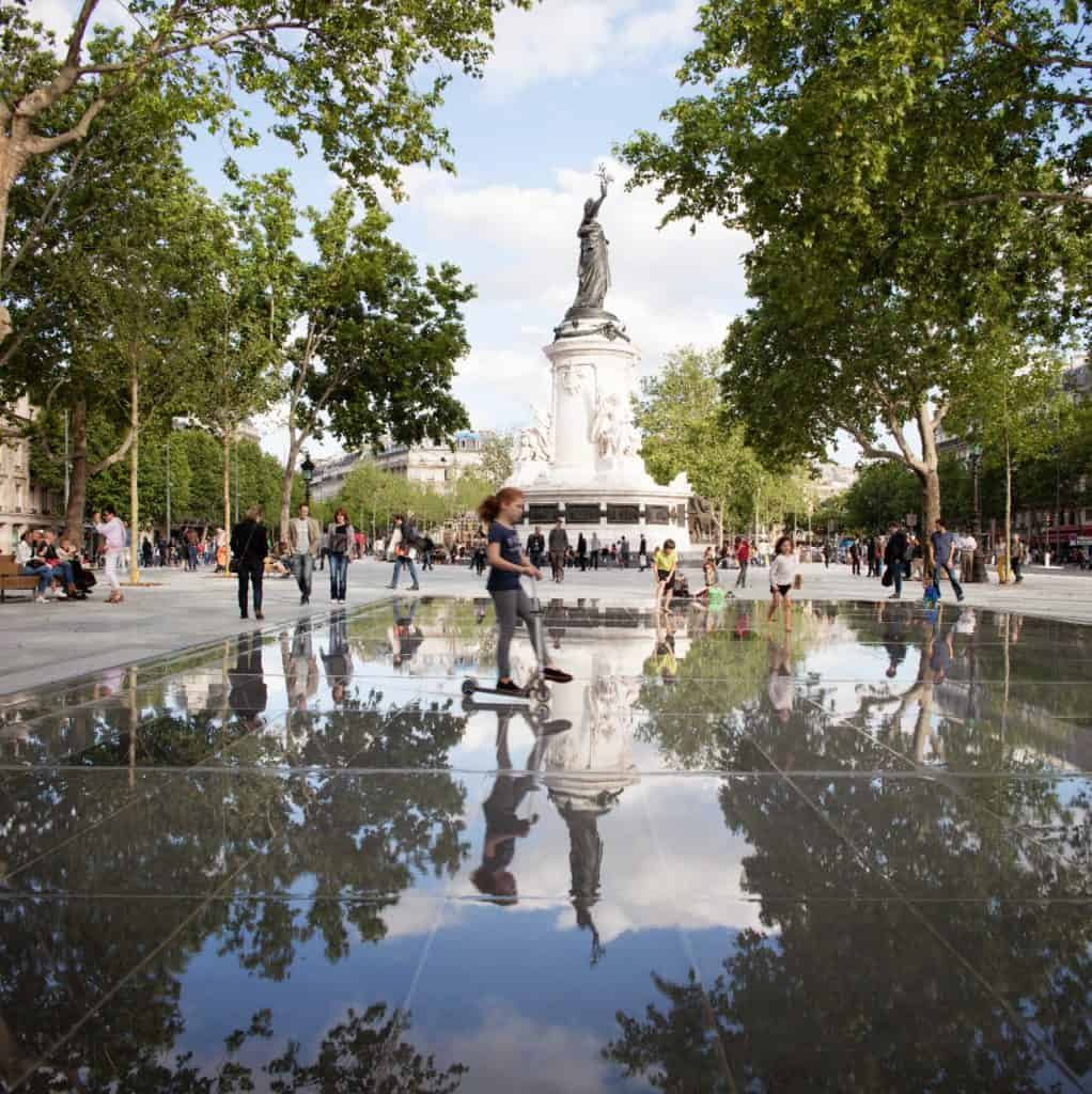 Κι ενώ στο κέντρο της Αθήνας έχουμε να «επιδείξουμε» την ιδιαιτέρως αποτυχημένη, κατά γενική ομολογία, ανάπλαση της πλατείας Ομονοίας, οι παριζιάνοι, δικαίως, υπερηφανεύονται για το νέο στολίδι στην καρδιά της γαλλικής πρωτεύουσας: την αναδιαμορφωμένη ιστορική Πλατεία της Δημοκρατίας (Place de la République), η οποία εγκαινιάστηκε μόλις τον περασμένο Ιούνιο.