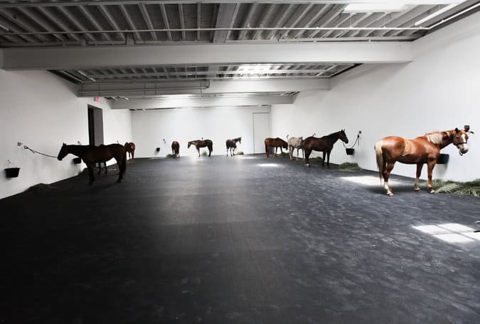 When I later reminded him of the installation he offered a different interpretation: “The horses were tied to the wall of the gallery in order to make a connection between the living element and the idea of solid foundations such as those that that exist in homes. Their placement in the room delineated the building’s foundations. When an exhibition like this ends, all that remains is a memory. It is the same with a theatrical performance. And this was the significance of my action, which is defined by freedom. It is a vision designed on the principles of play staging.”