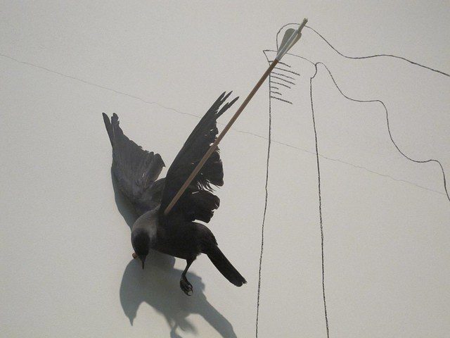 That same year Kounellis released live birds at the Kunsthalle in Dusseldorf. Later, at the Galleria L’Attico in Rome and at the Sonnabend Gallery in New York, he tried his hand at a quirky performance: he, as a living sculpture, on horseback, in the center of the gallery, with his faced covered by a plaster mask of Apollo: A subtle reference to and, perhaps, a nostalgic comment on the loss of the ancient world.