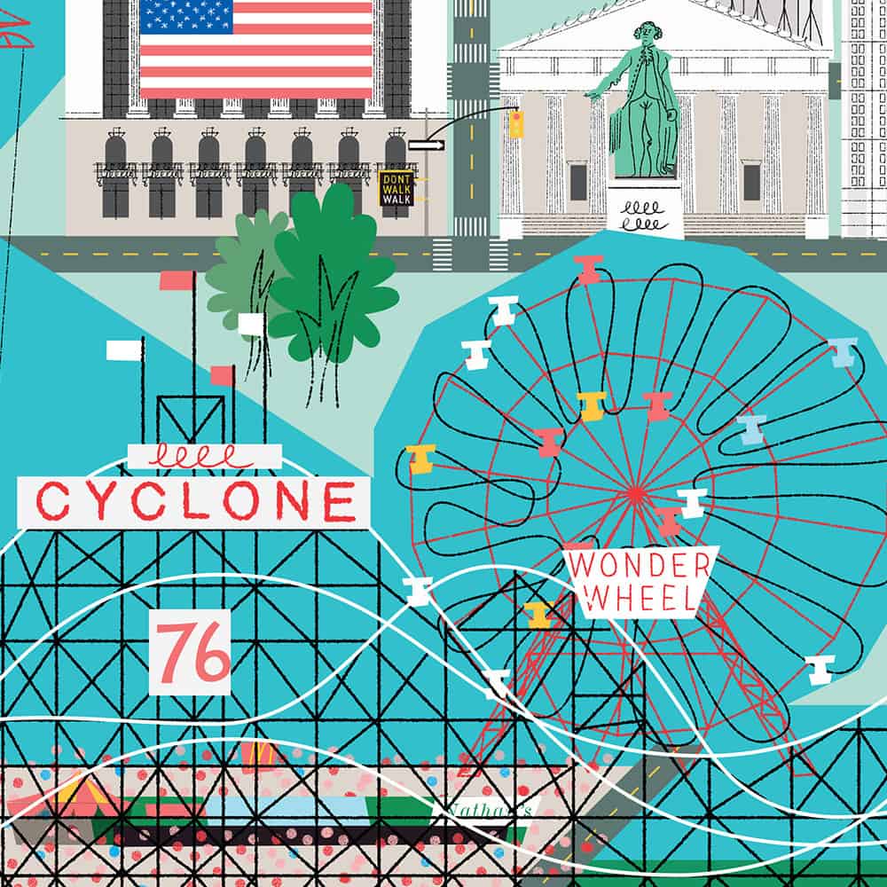 «Πρόκειται για ένα βιβλίο που αποτελεί τον τρίτο τίτλο μιας σειράς εκδόσεων. Ευτυχώς, είχα τη δυνατότητα να δανειστώ στοιχεία από τη σχεδιαστική κατεύθυνση που είχαν ακολουθήσει οι δυο εικονογράφοι που προηγήθηκαν από μένα. Το βιβλίο, με άλλα λόγια, είχε μάλλον ένα προκαθορισμένο ύφος. Το καλό με την αποτύπωση της Νέας Υόρκης είναι ότι πρόκειται για μια τόσο γνωστή πόλη, που ο καθένας μπορεί να την απεικονίσει. Σημαίνει, επίσης, τόσα πολλά πράγματα σε τόσο διαφορετικούς ανθρώπους, που είναι αρκετά δύσκολο να πάει κάτι πολύ στραβά στην απεικόνισή της».