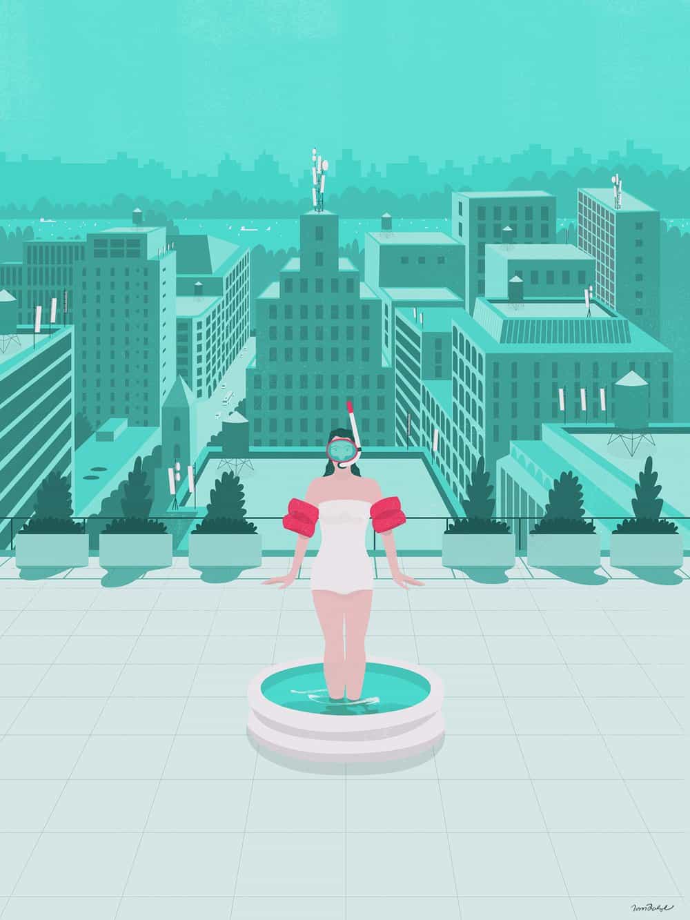 «Στην περίπτωση της εικονογράφησης που αφορά μια ατομική παραγγελία, υποθέτω ότι το κόλπο είναι να κατανοήσεις τον πελάτη και την ιστορία, πώς να αξιοποιήσεις το ιδιαίτερο ύφος και τις δεξιότητές σου, ώστε να δώσεις λύση στο αρχικό ζητούμενο. Για τη δουλειά σε ένα editorial, τώρα, πρέπει να έχεις μια καθαρή ιδέα την οποία να μπορείς να τη φτάσεις μέχρι το τέλος. Μην προσπαθείς να πεις πάρα πολλά μέσα από αυτήν ή να την παραφορτώσεις. Αρκεί η μία καλή ιδέα, αν καταφέρεις να τη μεταδώσεις αποτελεσματικά.